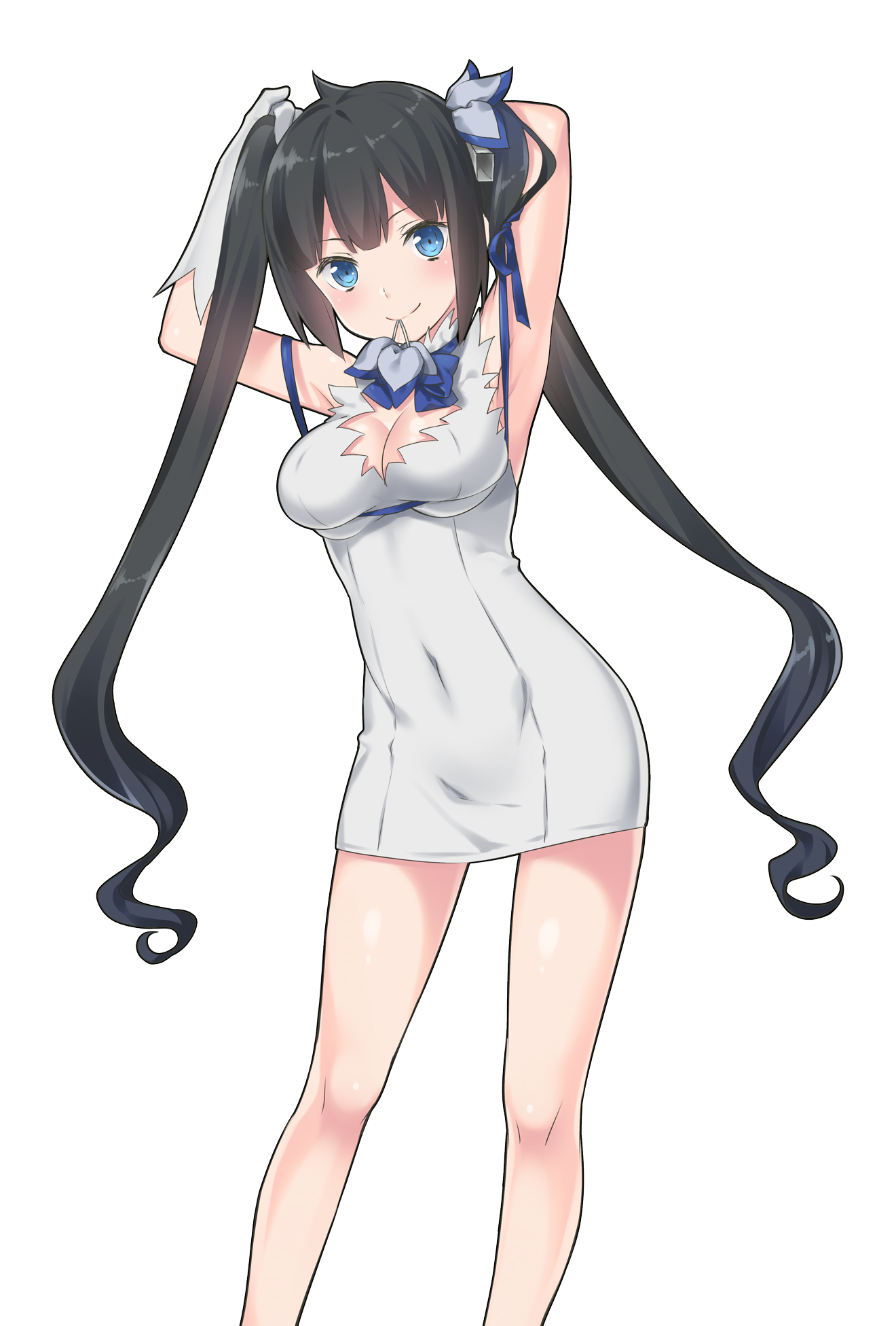 Anime 1320x1952 gray background simple background Dungeon ni Deai wo Motomeru no wa Machigatteiru Darou ka Hestia cleavage white dress
