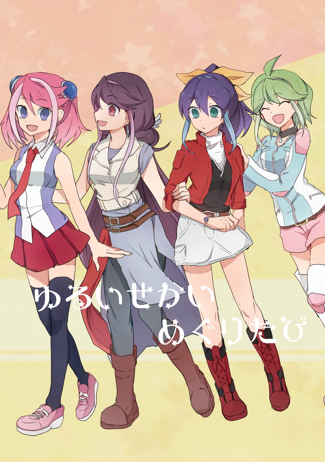Anime 1074x1524 anime anime girls Yu-Gi-Oh! Yu-Gi-Oh! ARC-V Hiiragi Yuzu Kurosaki Ruri Rin (Yu-Gi-Oh) Serena (Yu-Gi-Oh) zettai ryouiki pink hair purple hair green hair blue hair twintails long hair ahoge ponytail artwork digital art fan art